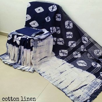 Cotton Linen tie & dye shibori plus Bandej Saree: 5.50 meters
