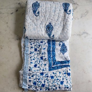 White & Blue Double Bed Razai